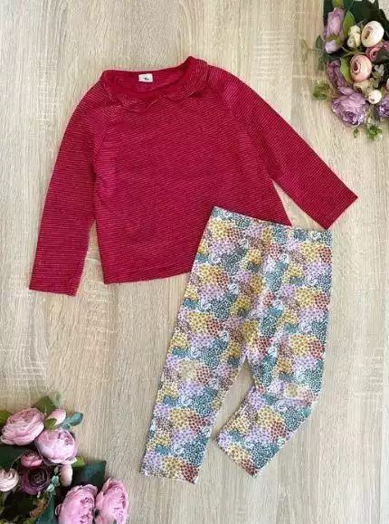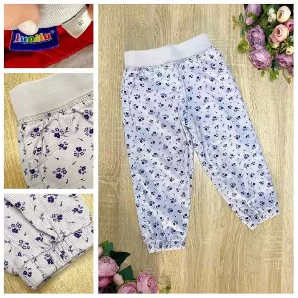 ФОТО 6: штаны вельветовые, внутри подклад хб трикотаж красного цвета, основной цвет светло-серый, цветочки темно-синие - 85грн.
