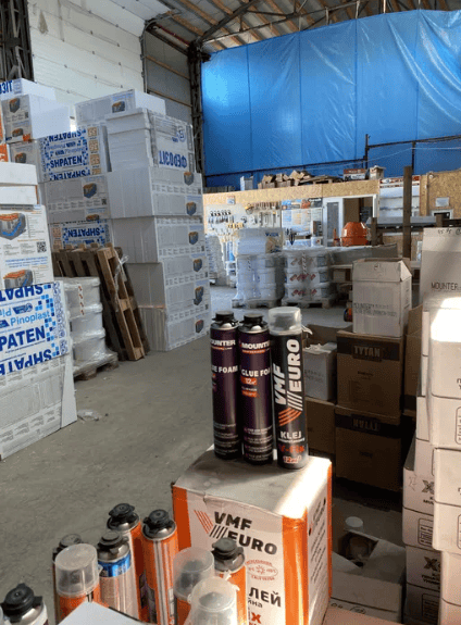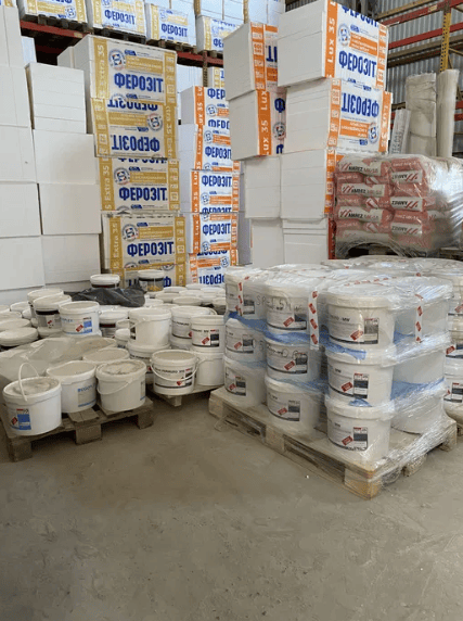 В наявності фарби, штукатурки декоративні(баранець, короїд), пінопласти газоблоки