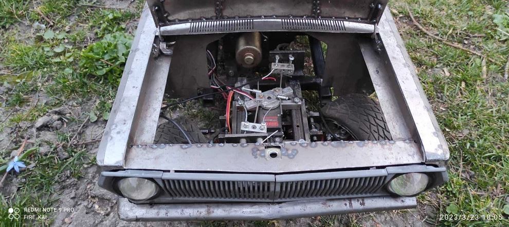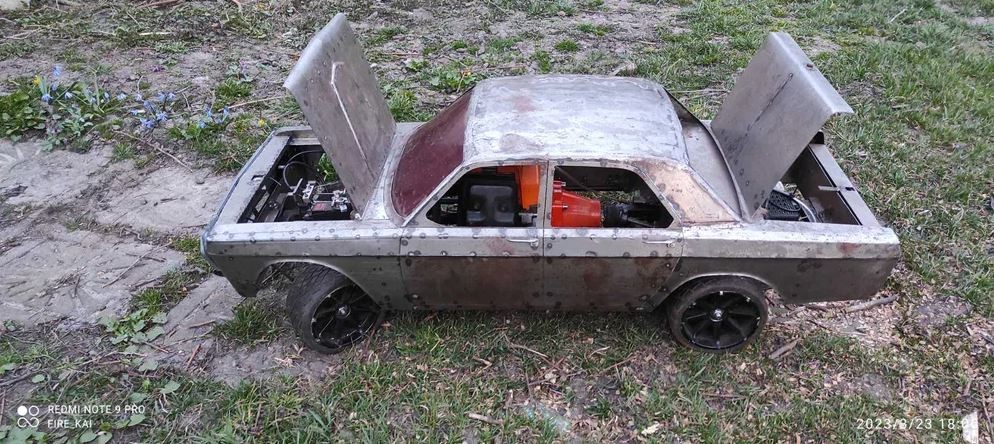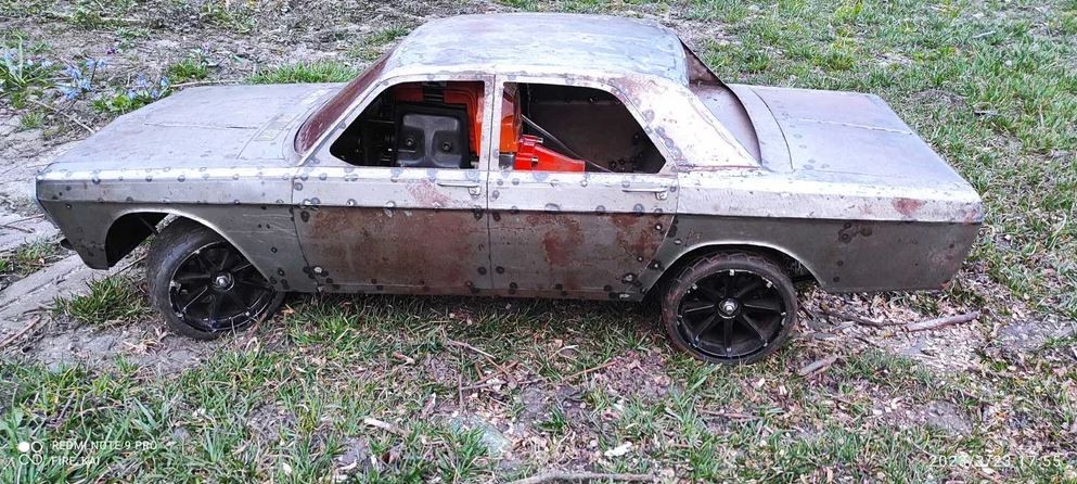 Продам не завершений проєкт радіокерованої моделі Волга ГАЗ 24. Масштаб 1/5. Габарити приблизно 100х40 см. РУЧНА РОБОТА ПОВНІСТЮ МЕТАЛ!!! Модель завершена процентів на 90. Потребує деяких косметичних доробок кузова і покраски. Встановлений мотор від мотокоси потужністю близько 2 кВт. Запускається з електростартера. Передня і задня підвіски на амортизаторах плюс ресори. Реалізовані дискові тормоза на всіх колесах. Встановлені 60 кг сервоприводи на рульове управління та тормоза. В задньому мостові диференціал. Передній і задній капоти відкриваються. Модель ПРОДАЄТЬСЯ БЕЗ КОЛЕС!!! Для запуску моделі будуть потрібні колеса, акумулятор, пульт с приймачем.