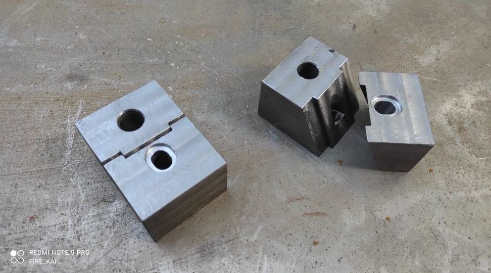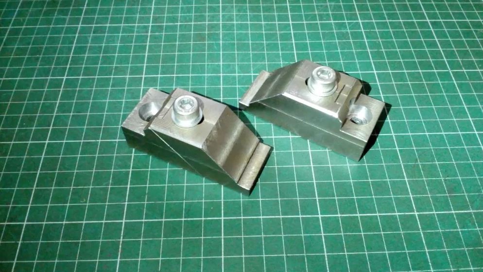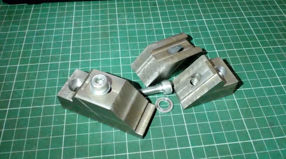 Фрезерные клиновые прижимы, самодельные. Ширина 30 мм высота 30мм длина 75 мм, высота прижимных губок 7,5 мм.