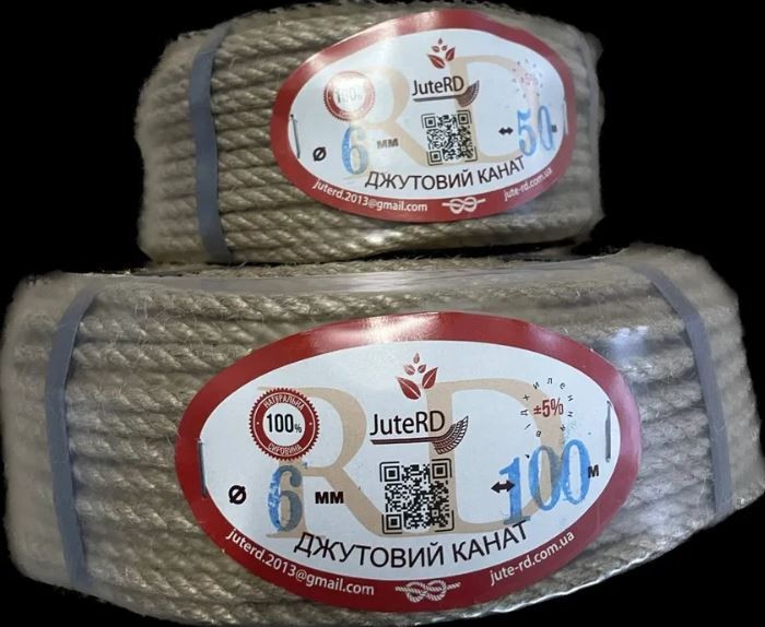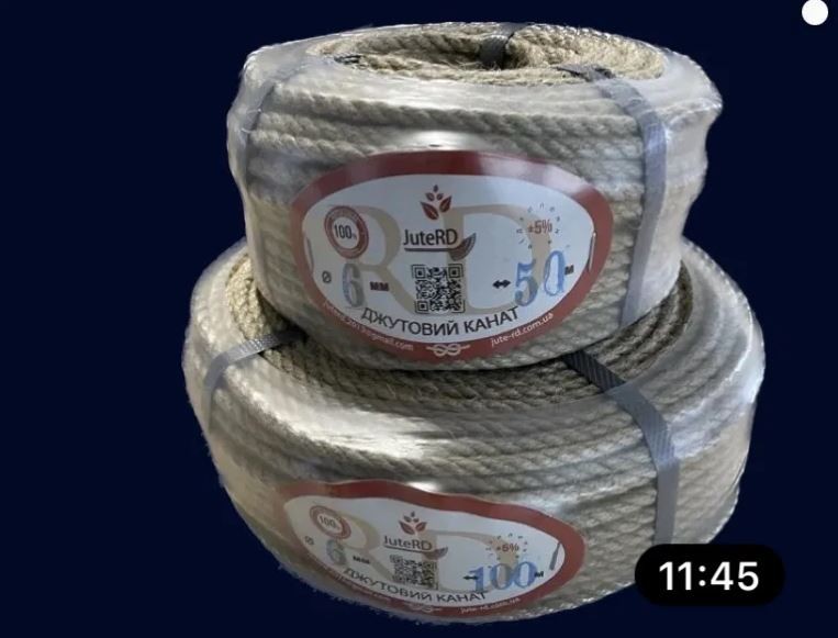 Канат джутовий 6 мм … Бабіни є різноі довжини 300-500 метрів .. чим більша бабіна тим дешевше виходить погонний метр .. дзвоніть пишіть завжди відповім .. якщо є можливість у вас пишіть на Вайбер