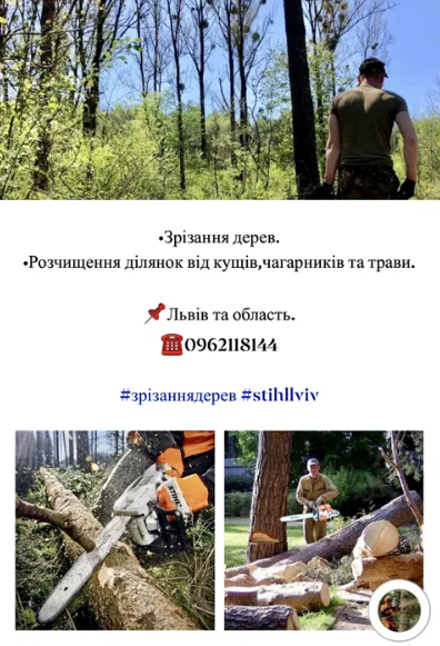 Зрізання дерев,чистка ділянок,покіс,косіння трави,бур‘янів.
